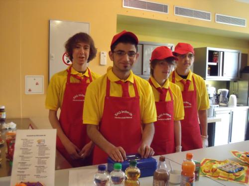 Die sehr praxisorientierte Arbeit im Theaterbistro erledigten Patrik R., Bastian W., Mehmet K., Rolf L., Luljetta R., Lisa H.,